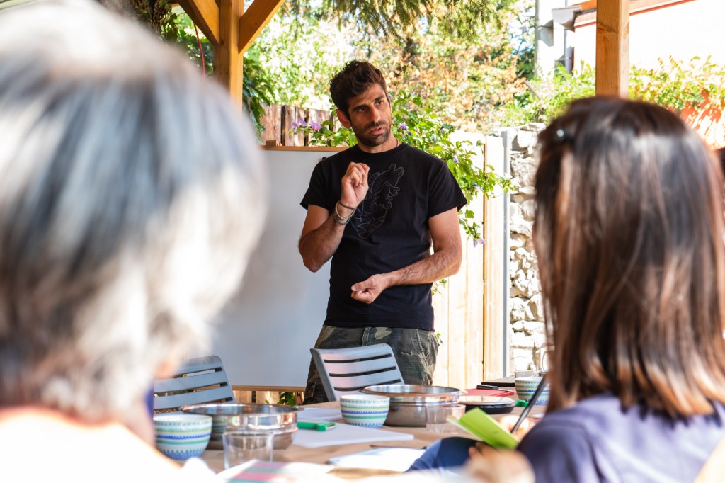 Nelle due mattinate Flavio ha guidato i partecipanti nella fermentazione delle verdure, prima con la teoria, spiegando i principi base, l’utilizzo delle spezie, la conservazione, l’effetto che i fermenti vivi hanno sul nostro microbiota, passando poi alla pratica e assaggio delle verdure Orto Fermentato, per capire i vari sapori e quale dovrebbe essere il risultato finale delle loro preparazioni; sono stati utilizzati i due metodi della fermentazione lattica delle verdure: il metodo a secco e il metodo in salamoia! Ogni partecipante ha realizzato 3 vasetti diversi: uno con il cavolo cappuccio, uno con le carote e un vasetto di kimchi, che è stata decisamente la verdura fermentata più apprezzata di questo weekend!